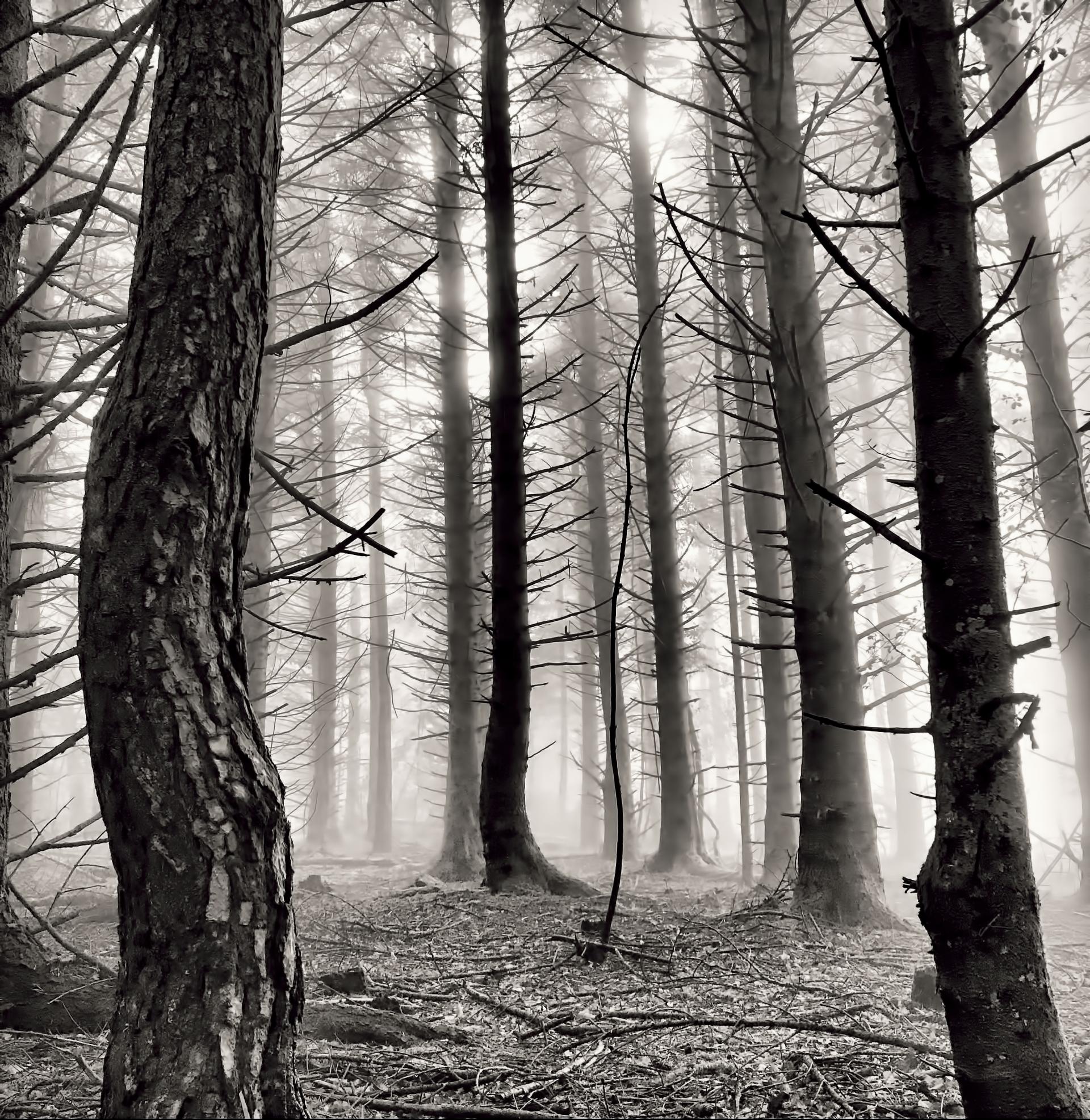 Arbres Noir et Blanc Forêt Paysage Brume Brouillard Bois