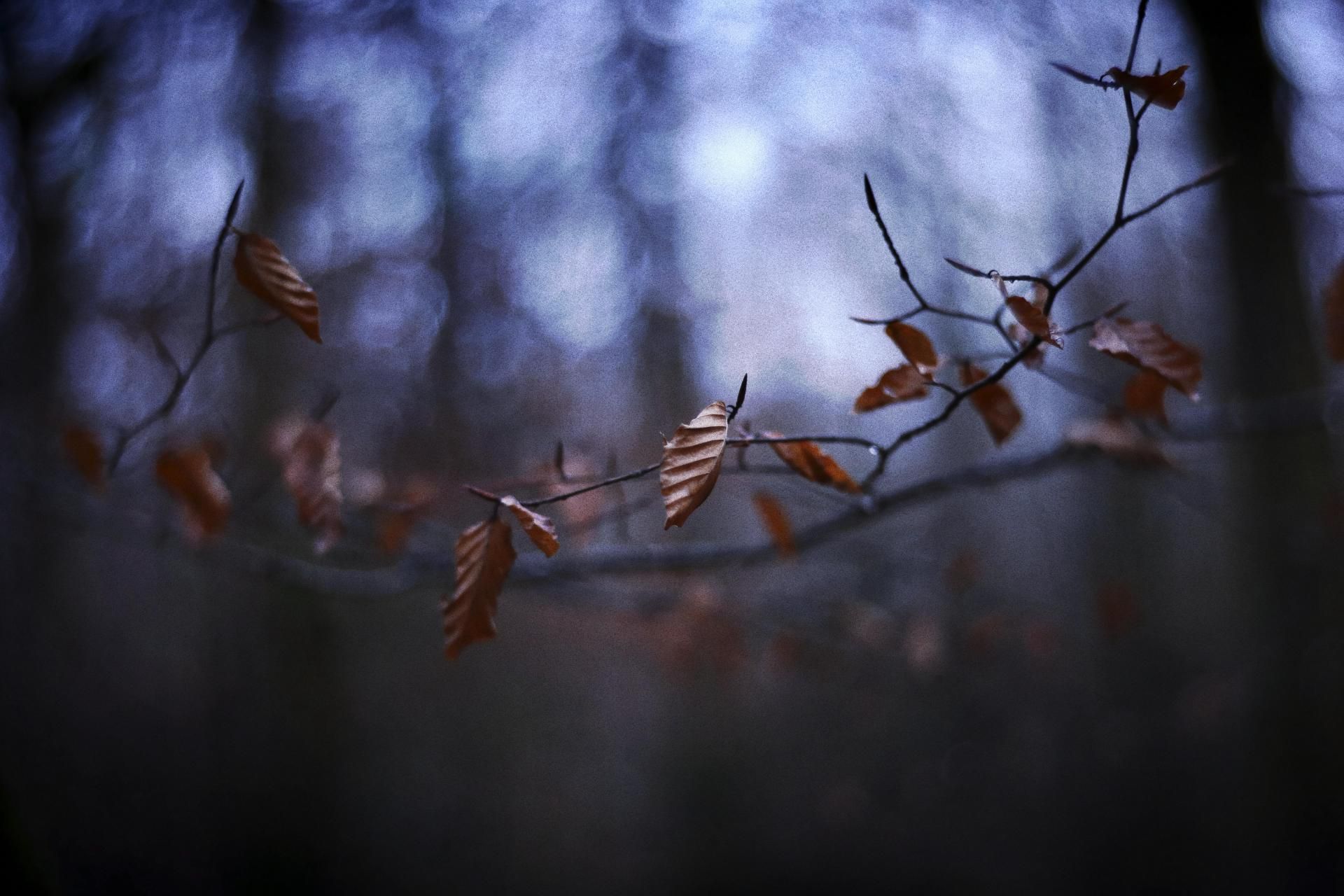 Photo réalisée en forêt de Liffré (Bretagne, France), en début de crépuscule un soir d'hiver.