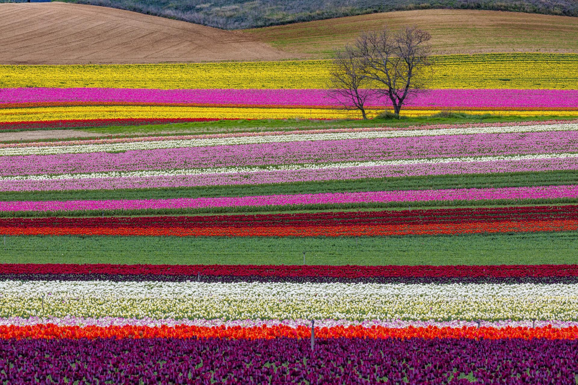 Ce magnifique champ de tulipes aux faisceaux de couleurs chatoyantes nous fait penser à la campagne hollandaise. Pourtant, nous sommes au pays de Forcalquier et de la montagne de Lure où ces tulipes horticoles sont une spécialité. Au printemps, ces fleurs mythiques aux innombrables variétés illuminent les champs de leurs nuances intenses et moirées. Un moment de pure magie, qui ne dure hélas que quelques jours.