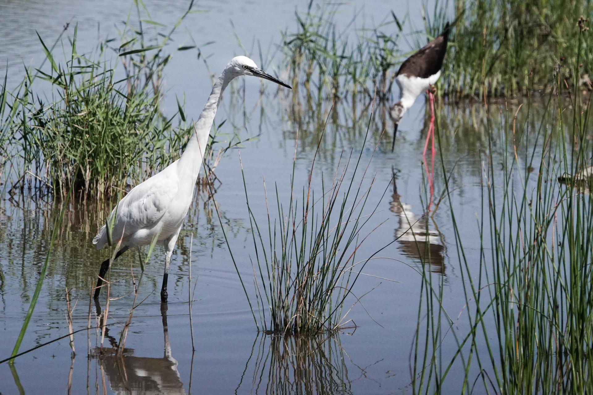 Aigrette garzette et échasse blanche (au fond), Réserve naturelle S’Albufera, Majorque, mai 2017 Cette image fait partie de la série « Merveilleuse Biodiversité »