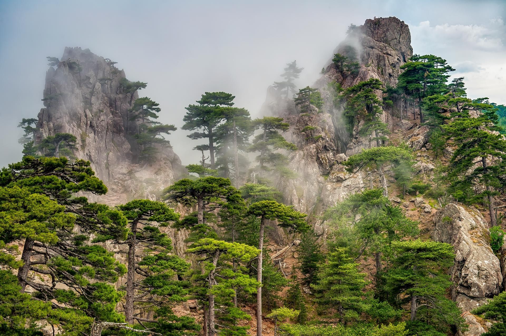 Magnificent Corsican nature! Corsica’s extreme landscapes are full of surprises. Here, in the south of the island, the environment of the Aiguilles de Bavella bears a striking resemblance to the Anhui Mountains in eastern China, a UNESCO World Heritage Site. At the heart of the regional nature park, the Bavella site is characterized by jagged peaks and a forest of laricio pines, with their pyramidal silhouettes of long, ashen-green needles, bent by the wind.* ​ --------------------------------------