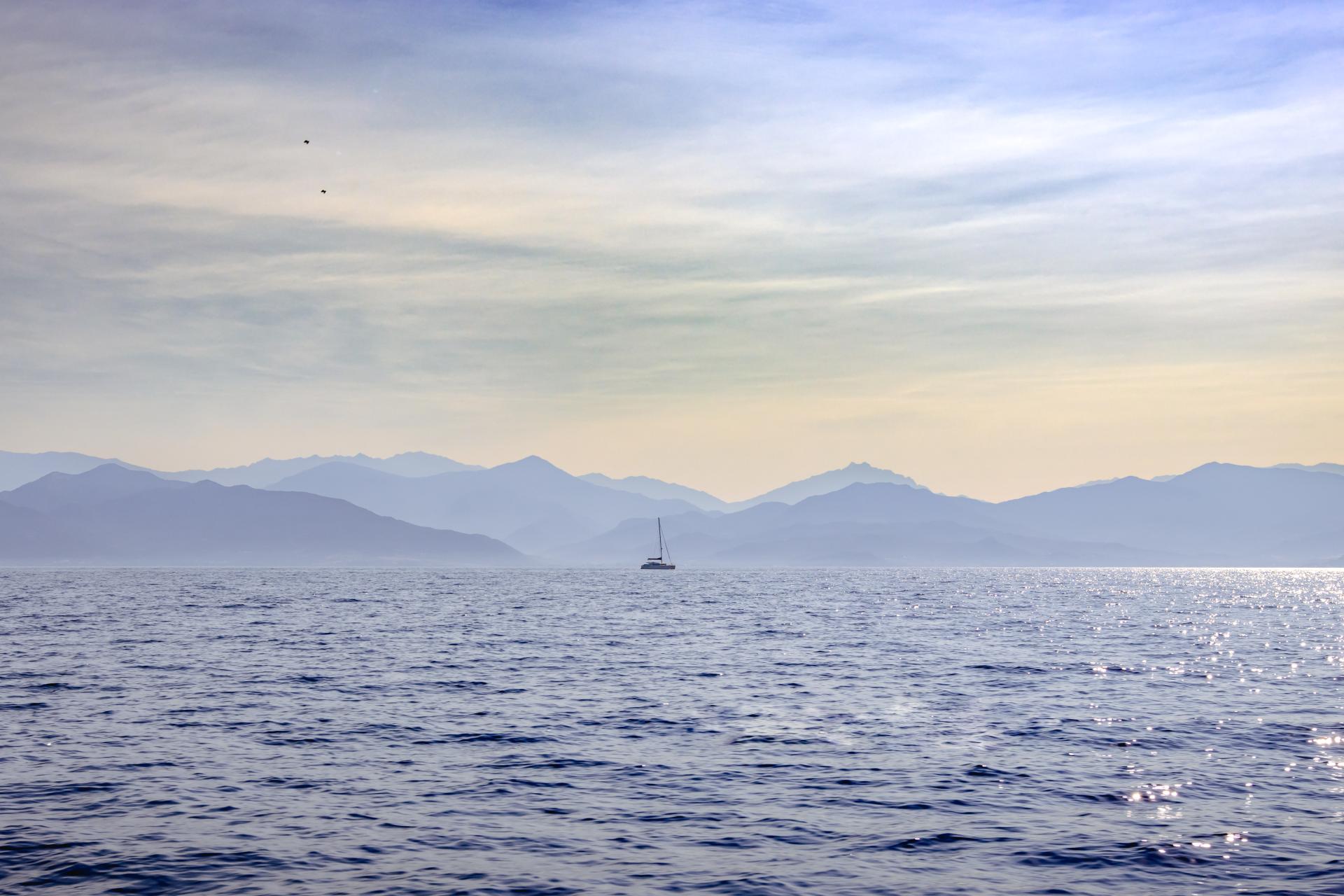 Photo prise au petit matin lors de la traversée en bateau du Golfe de Porto sur la côte ouest de la Corse. Photo prise avec un Canon EOS 90D et un objectif 18-35mm.