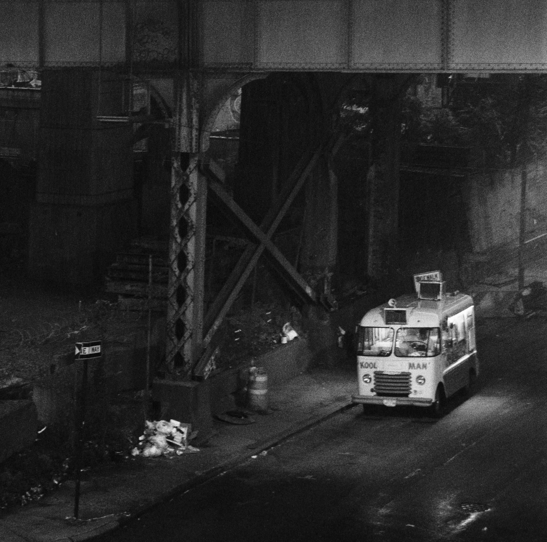 Septembre 1998, en voyage à New York pour un reportage, je me promène dans Brooklyn avec l’amie Sophie quand une tempête éclate soudain. Des trombes d’eau nous tombent dessus; le vent décroche des plaques de tôle du métro aérien et explose les poubelles; les voitures fuyent, le marchand de glace trouve refuge sous le pont. Le nôtre sera l’atelier de l’ami Philou. Là, plongés dans le noir, nous attendons que le calme revienne. Yoga pour Sophie, cents pas pour Philou, quant à moi, je fouille dans mon sac et trouve une pellicule noir et blanc 36 poses rescapée d’un précédent reportage. Alors de la fenêtre, j’observe et immortalise 36 instants que je ne suis pas prêt d’oublier.