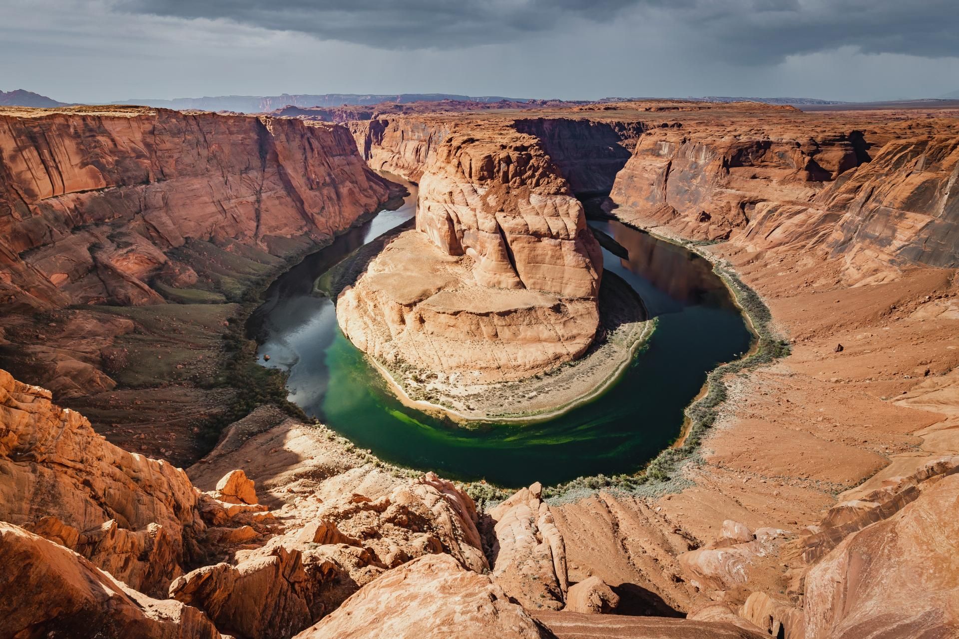 Horseshoe Bend situé en Arizona est une formation géologique époustouflante formée par le fleuve Colorado. Il tire son nom de sa forme en fer à cheval où le fleuve serpente gracieusement entre les roches orange et les falaises majestueuses. La vue panoramique depuis le sommet est à couper le souffle offrant une perspective unique sur la puissance de la nature. C'est un lieu très populaire auprès des amateurs de randonnée et des photographes en raison de sa beauté naturelle saisissante. Les couchers de soleil à Horseshoe Bend sont particulièrement spectaculaires peignant le ciel avec des teintes magnifiques qui se reflètent sur les eaux du fleuve. Horseshoe Bend est un joyau naturel qui laisse les visiteurs émerveillés devant la grandeur de la nature.