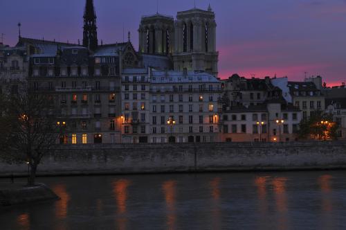 Une Citroën deux-chevaux des années 1960 garée sur le quai d’Orléans, à l’angle de la rue le Regrattier sur l’île Saint-Louis.