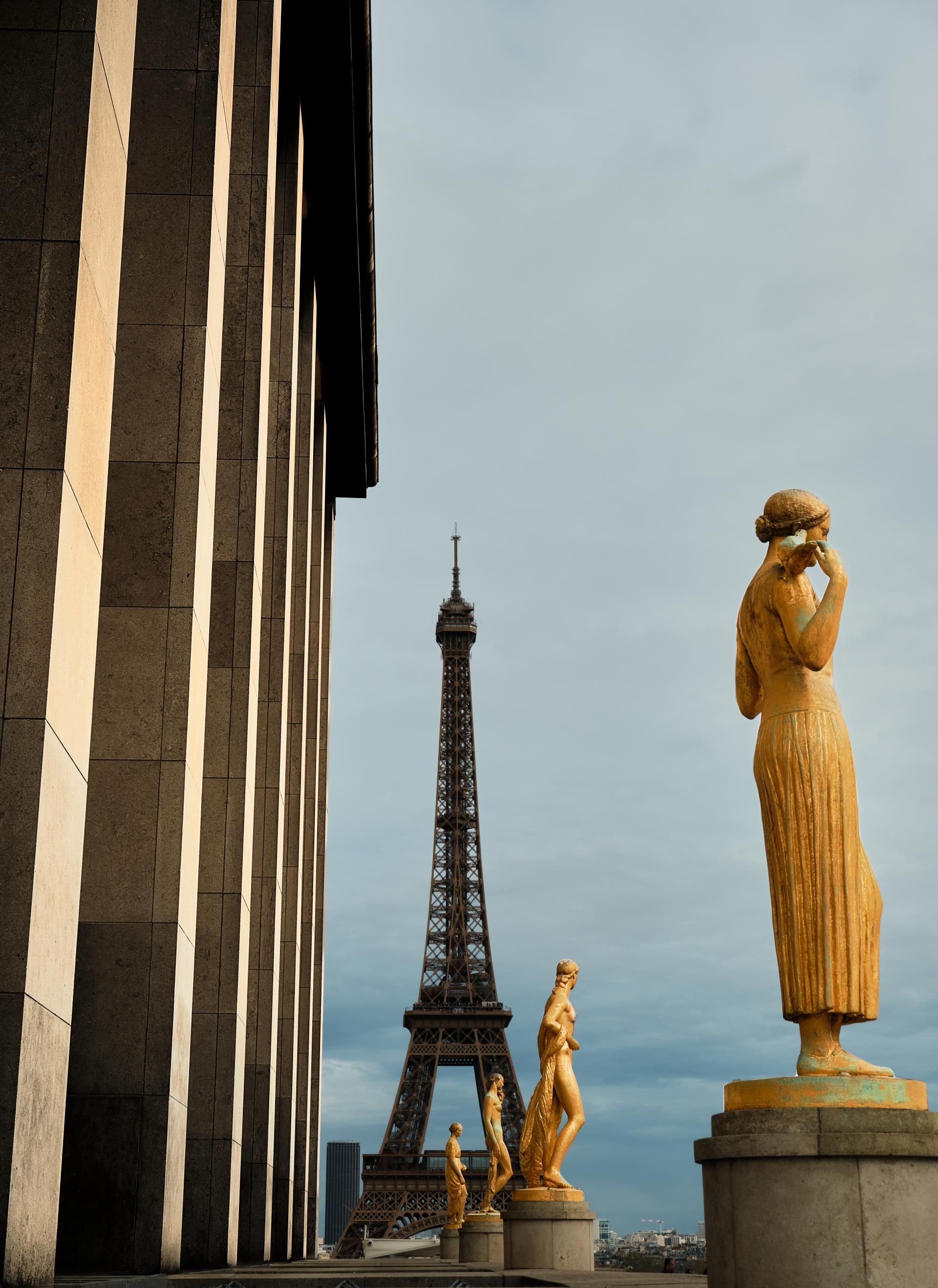 Four bronze statues stand on the Trocadero Esplanade. As if frozen in time, they stand aligned. They symbolize allegories of youth, flora, morning, the countryside, fruits, spring, gardens, and birds.